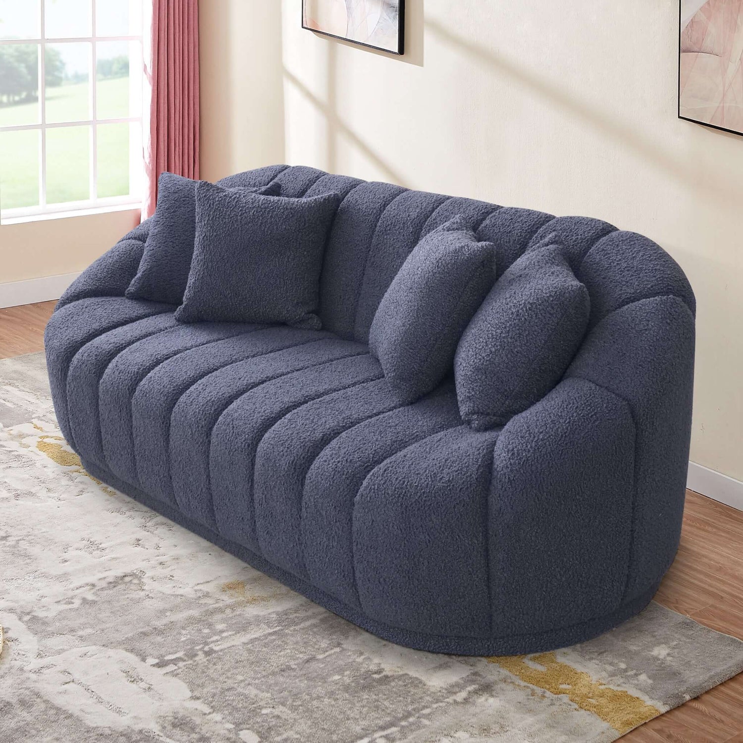 The Mid-Century Modern Japandi Style Boucle Organic Couch is a stunning piece of furniture that seamlessly combines the elegance of mid-century design with the simplicity and tranquility of Japanese aesthetics. Crafted with meticulous attention to detail, this couch exudes a sense of sophistication and harmony. The couch features a sleek and minimalistic silhouette, characteristic of mid-century modern design. Its clean lines and gentle curves create a timeless appeal that effortlessly complements any interior decor. The frame is expertly constructed using high-quality organic materials, ensuring durability and sustainability. One of the standout features of this couch is its luxurious boucle upholstery. The boucle fabric adds a touch of texture and depth to the overall design, creating a cozy and inviting atmosphere. The organic fibers used in the upholstery are not only visually appealing but also eco-friendly, making this couch an excellent choice for those who prioritize sustainability. The Japandi influence is evident in the subtle details of this couch. The low-profile design and the use of natural, earthy tones evoke a sense of calmness and serenity, reminiscent of traditional Japanese interiors. The incorporation of elements such as wooden legs or accents further enhances the fusion of these two design styles, creating a harmonious and balanced aesthetic. Comfort is not compromised in this couch, as it features plush cushioning and generous seating space. The carefully selected materials ensure a comfortable and supportive sitting experience, making it perfect for lounging or entertaining guests. Overall, the Mid-Century Modern Japandi Style Boucle Organic Couch is a true masterpiece that effortlessly combines the best of mid-century modern and Japanese design. Its timeless elegance, sustainable construction, and inviting comfort make it a perfect addition to any contemporary living space, adding a touch of sophistication and tranquility