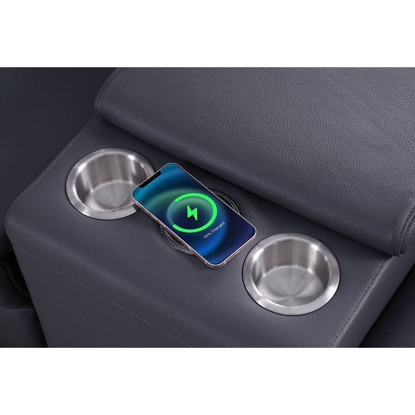 Introducing the exquisite Picasso Sectional in a refreshing Dark Grey hue, a testament to modern Contemporary Style. Crafted with meticulous attention to detail, this sectional features a harmonious blend of luxury and functionality. The Leather Match upholstery offers a perfect balance between opulence and practicality. Equipped with three Power Recliners and two Power Headrests, this sectional ensures personalized comfort at your fingertips. The thoughtfully designed Console comes with convenient Cupholders, allowing you to relish your favorite beverages while lounging. To keep you connected, a built-in Wireless Charger ensures your devices stay powered without interruption. Elevate your living space with the Picasso Sectional, where sophistication and innovation converge seamlessly.